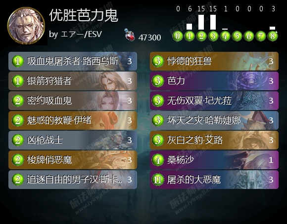 原本冷门职业的吸血鬼在DLC后得到了重视。偏向快攻的芭力鬼可以优开葬送死,环境初期时作为针对葬送死的先头部队很是活跃,然而随着环境的演变,芭力鬼的劣势对局越来越多,使用量也就跌落下来了。