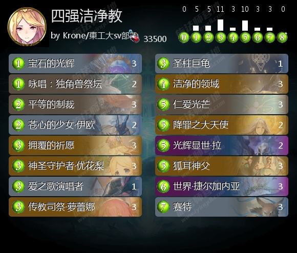 相比起牛仔妖的降温,洁净教的表现十分稳定。虽然主教也是只有一套主流思路的职业,但是洁净教在环境中的地位显然更加坚挺。虽然说一般会认为洁净教对抗葬送死时有些劣势,但是狐耳神父补充了0费回复之后,洁净教的做场能力会比较强,对抗葬送死时也有机会让对手解不掉自己的场面而取胜。