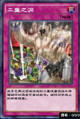 二重怪兽在二重状态被战破才能发动,破坏对手全部怪兽。在通用性上面,是肯定不如镜壁的。不过也不是完全没有投入价值,毕竟和超二重之力有配合,而且作为BEAT卡组,也是可能断怪导致我们二重召唤的。