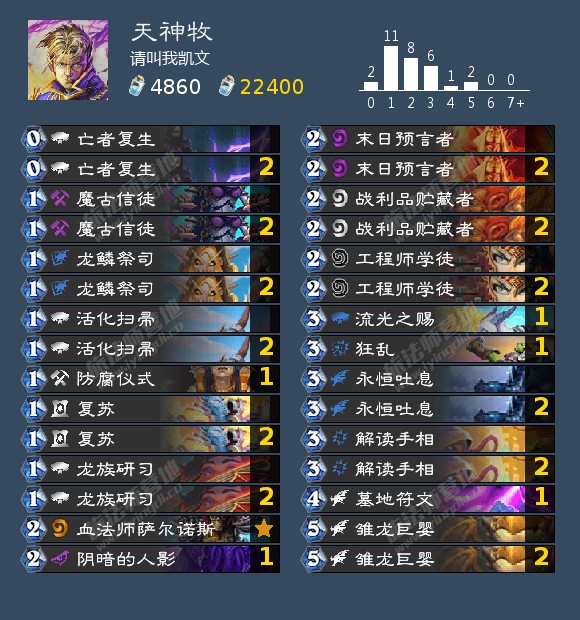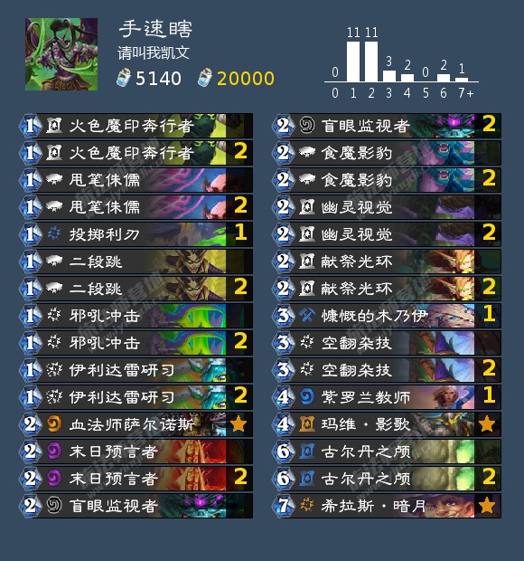 起手全力找祭司,有祭司过牌速度可以上升一个档次。otk卡组的终极奥义就一个字:苟