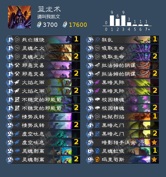 通过开门拿到0费沃金或者4费蓝龙配合伤害完成斩杀,可以用跟班或者阴谋得到交换媒介。虽然魂火还是有可能丢魂火,但是作为比胡卡组还是要赌上一把的。