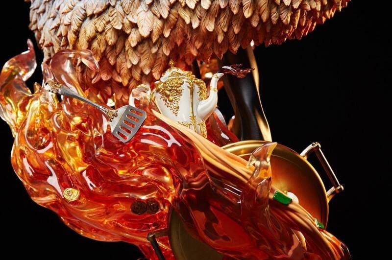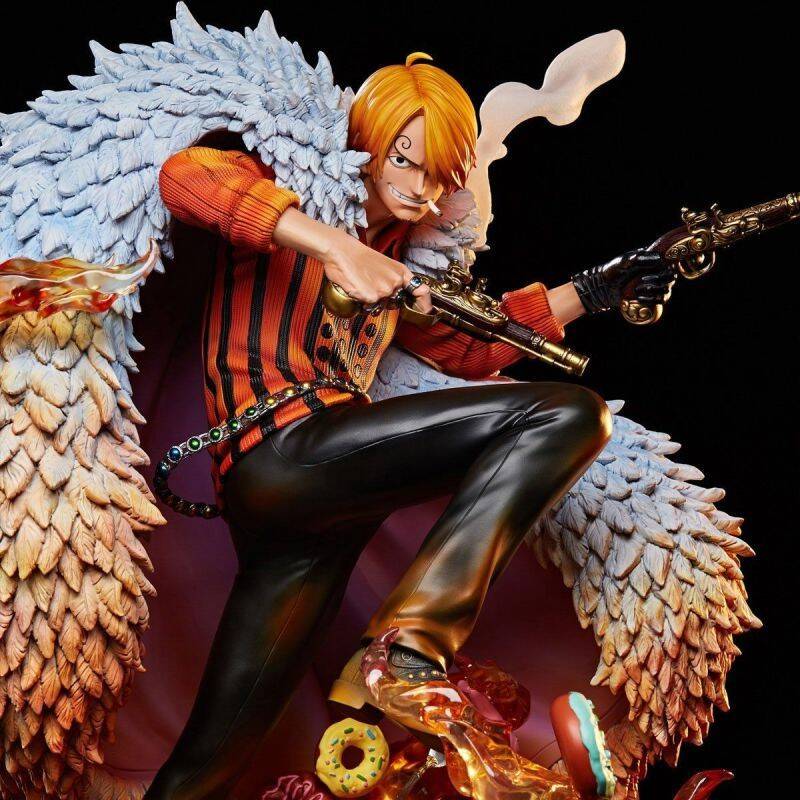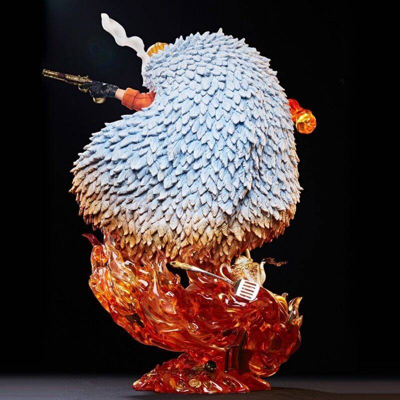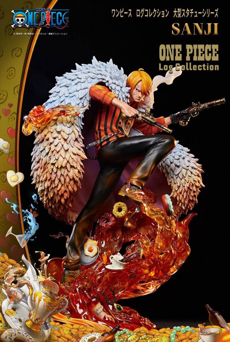 由PLEX公司制作的《海贼王》大型雕像系列“ONE PIECE Log Collection”,推出了最新的山治大型战斗雕像,1/4比例造型超棒。本款雕像以《海贼王》动画DVD封面插画为原型,将插画中双手持枪的山治完美再现。雕像还原了山治脸上帅气的笑容、特色眉毛以及叼着香烟的招牌表情,身披贵气的羽毛披肩与金属配件制作十分精美。地台采用了熊熊燃烧的火焰特效,还搭配有金币、厨具、酒瓶、牛排等厨师元素的细节,整体效果令人惊叹。