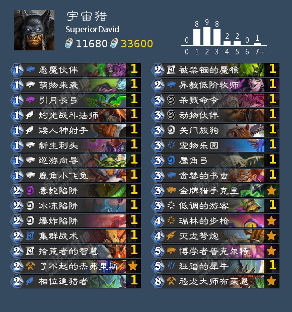 猎人玩家最后的倔强,构筑上没什么好说的,感慨博学者恐龙大师都被加了一费。