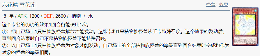 6 星 / ATK: 1000 / DEF: 2400 / 植物 / 水