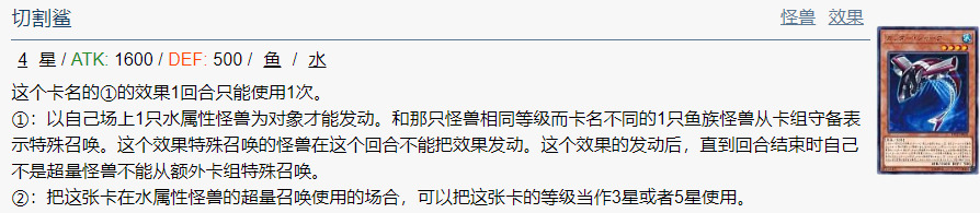 4 星 / ATK: 1600 / DEF: 500 / 鱼 / 水