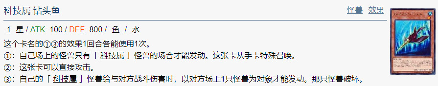 1 星 / ATK: 100 / DEF: 800 / 鱼 / 水
