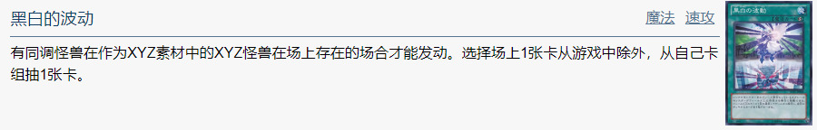 有同调怪兽在作为XYZ素材中的XYZ怪兽在场上存在的场合才能发动。选择场上1张卡从游戏中除外,从自己卡组抽1张卡。