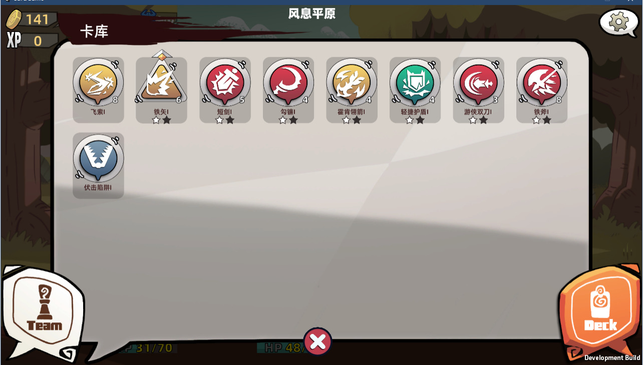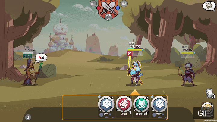 我们最多可以控制3名角色,三名角色公用同一套卡组,并且所有卡牌都是通用的,这也是我们游戏的特色之一,这意味着,法师可以叠盾,战士也可以连射;具体卡组可以点开“deck”界面查看。