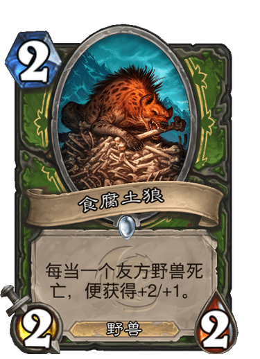 这版本唯一一张有强度的野兽随从,1费跟俩11跟雄斑虎一样,还能复制出污手党的buff,必满编;