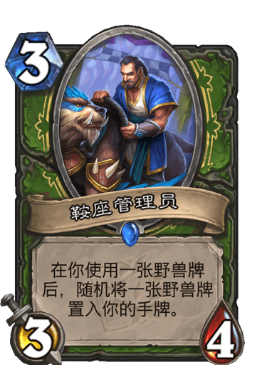 自己场上有随从优先动物伙伴(拉出雷欧克也不亏),手上有驯兽师就下强能箭猪,不满足上面两条情况就下鞍座管理员;(不用严格照着打,灵活点)