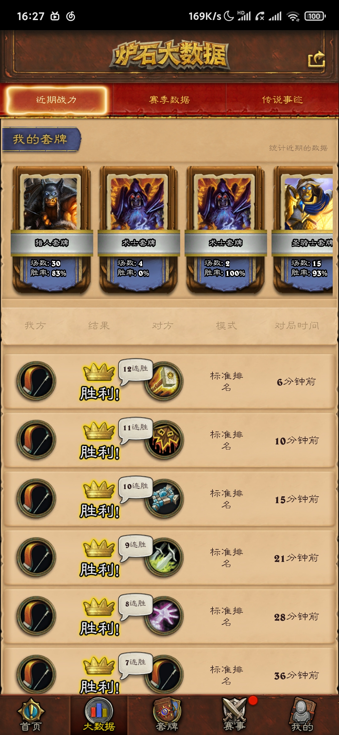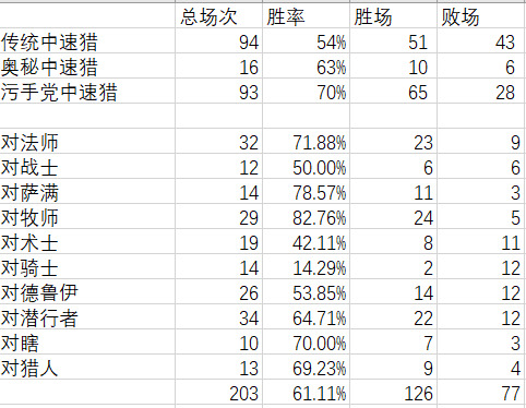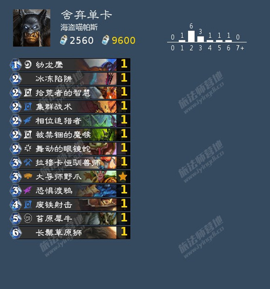 这里把我最初版、奥秘版以及污手党版放出来,后两套的卡组胜率也跟最终版差不多;污手党流主要在白银10到钻石5,传统中速猎跟奥秘流的则是在钻石5到传说,