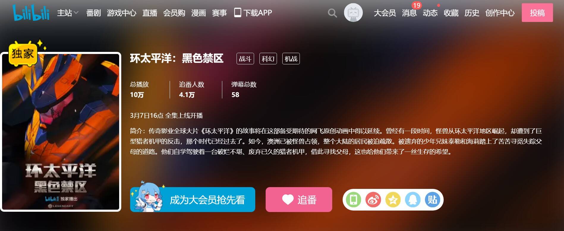 据B站官方页面显示,Netflix原创动画剧集《环太平洋:黑色禁区》将于3月7日下午4点在B站独家播出。