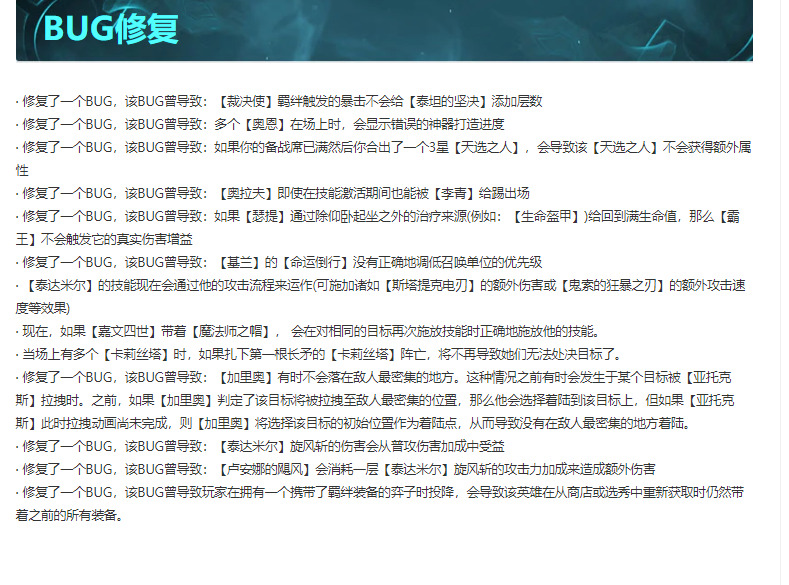 版本大部分羁绊遭到削弱,但都削弱了就不算削弱。就拿三国、森林、龙魂、斗士、重装这5个大羁绊来看,均小幅度削弱6羁绊效果,较大削弱9(斗士与重装是8羁绊)羁绊效果,环境整体强度还是差不多。