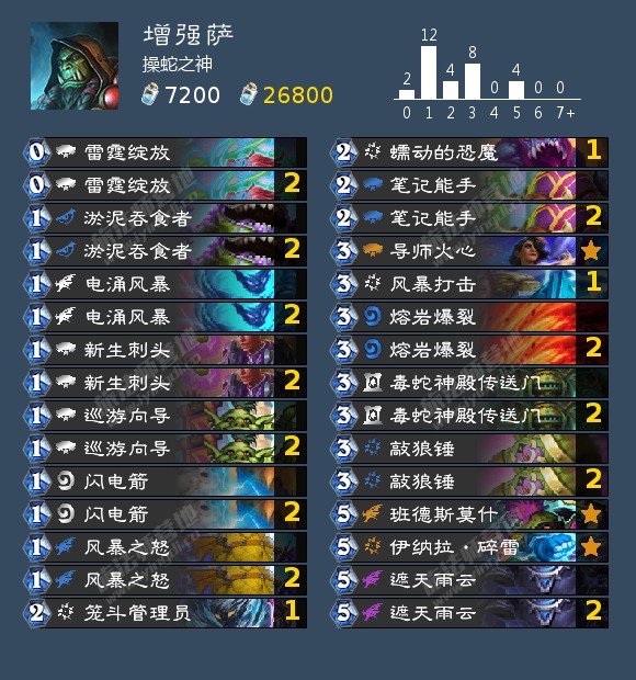 国服玩家操蛇之神的一套增强萨,他使用这套卡组在只有10星buff的情况下打上传说。