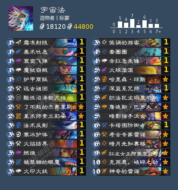 国服玩家造物者丨际蒙(也就是我自己)在月初使用的一套宇宙法,我使用这套卡组把大号和小号都打上了传说。