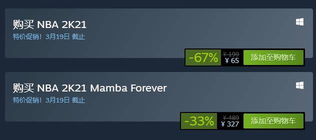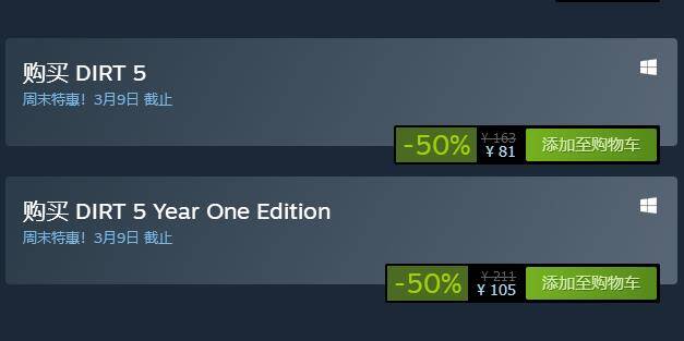 除了免费试玩外,《尘埃5》和《NBA 2K21》还在Steam开启了特价促销: