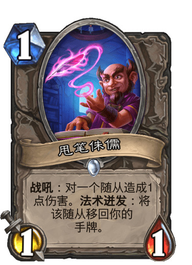 甩笔侏儒是将本体回手,因此使用了“本随从”的描述。(也有玩家据此提出涉及本体的效果一律用“本随从”)
