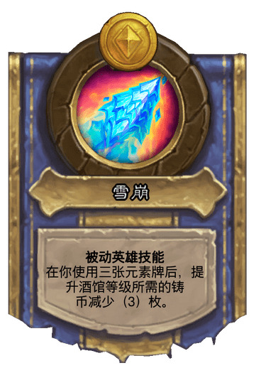 81706:被动英雄技能 在你使用三张元素牌后,提升酒馆等级所需的铸币减少(3)枚。