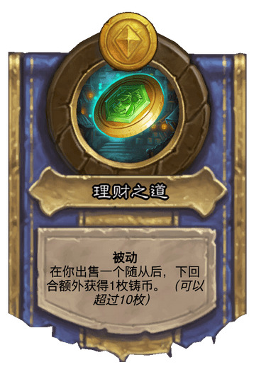 88605:被动 在你出售一个随从后,下回合额外获得1枚铸币。(可以超过10枚)