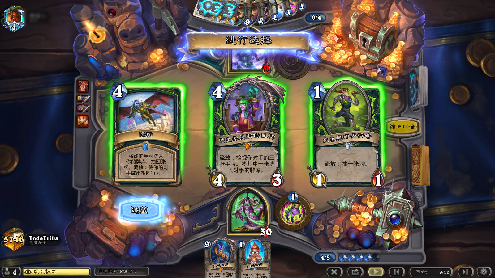 这里我选择解场后打法力燃烧卡高弗雷而不是卡DK,复盘后果然赌对了