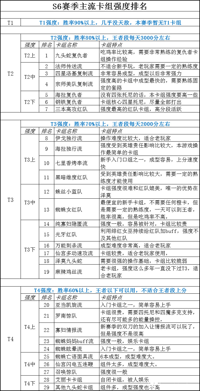 新的赛季大家很多人还摸不清方向,我把本赛季各个卡组的强度列出来,方便大家选择使用: