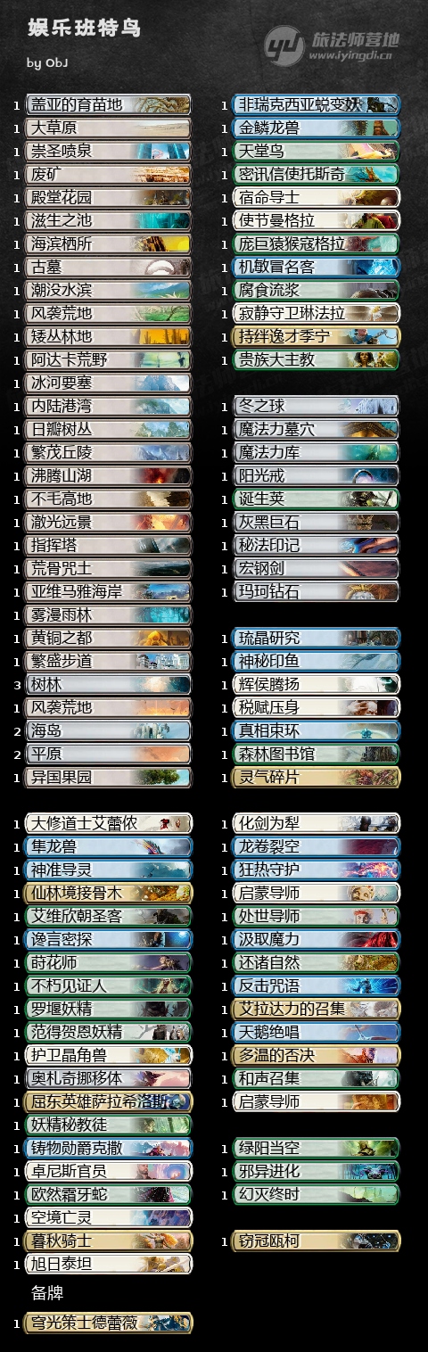最后,官禁EDH本质上是个群体游戏,且各个群体风格强度差异巨大,你组的再强找不到群体没人和你打,也没有任何意义,本文也仅仅是笔者对套牌的分享,以及一些玩了几年的班特鸟的感想。对于套牌或者班特鸟的思路有什么感想,以及建议,欢迎提出,谢谢各位了。