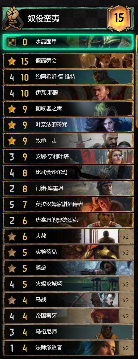 PS:下面的牌表我转成中文的是为了方便大家抄作业,国际服的账号切记不要用zh-cn的一键导入链接,会回归国服!