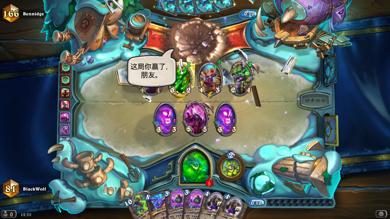 总地来说,尽管这个对局术士确实有一定优势,但对局中的变化和注意点还是非常多的,同时也非常考验双方疲劳阶段的操作功底。我花了最多的篇幅来分享我个人的经验,希望对术士和牧师玩家都能有些帮助。