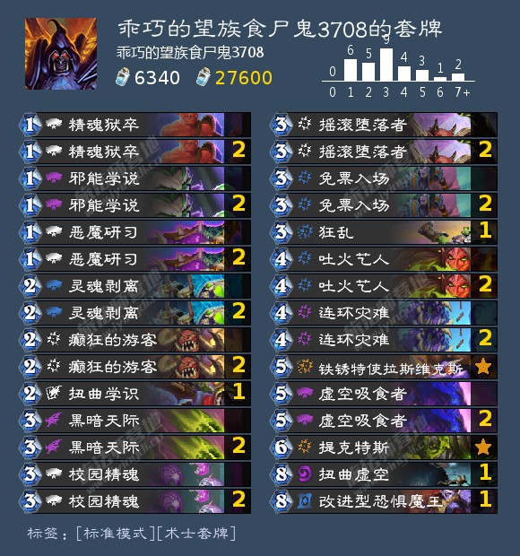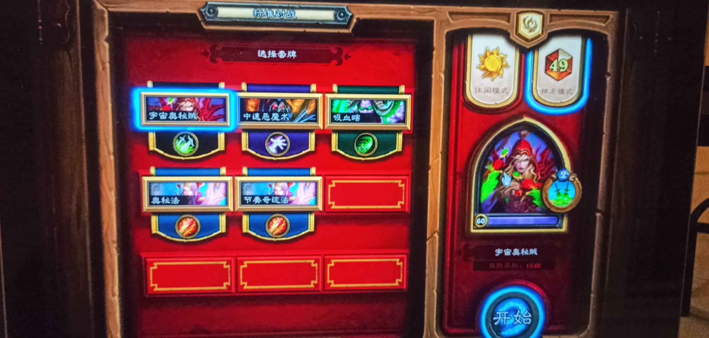 大家好,我是青鸾|北极星,从公测开始玩炉石的老咸鱼一枚,法师盗贼术士德鲁伊是我比较熟悉的职业,并且都有了千胜皮肤。炉石AFK了好几次又回来了好几次,最近一次回坑是在去年外域末期。本人除了快攻卡组其他都有涉猎,通灵学院和暗月马戏团初期沉迷奇迹法的操作感,并且打到过结算前百,但自己也一直喜欢探索一些构筑的可能性,很久以前就在贴吧发过自己上传的自创卡组(复制淤泥的随从法)。在小扩展出来之后一直在尝试各种非主流卡组,希望能找到一套和奇迹法一样兼具操作感娱乐性和强度的套牌。上个月是用的自创的中速恶魔术(卡组也在下面)上传的,最高也打进过前500,但是中速卡组整体还是偏笨重,而且超生德少了之后优势对局也少了很多。而上个月末期和这个月我都是在玩这套低费宇宙奥秘贼,感觉找到了我想要的答案!并且在前两天9胜1负打进了前50(其实就是49。。。)。这个月从开打到现在也是总共119场接近六成的胜率,卡组的强度还是比较有说服力的。当然值得注意的是这套卡组的强度其实有一部分来自于信息差(特别是偷天换日奥秘,下面会详细说),所以并不是说绝对强度可以达到颠覆环境的程度,但是作为一套兼具操作感娱乐性的卡组,还是想赶在下个大补丁之前给大家分享一下。