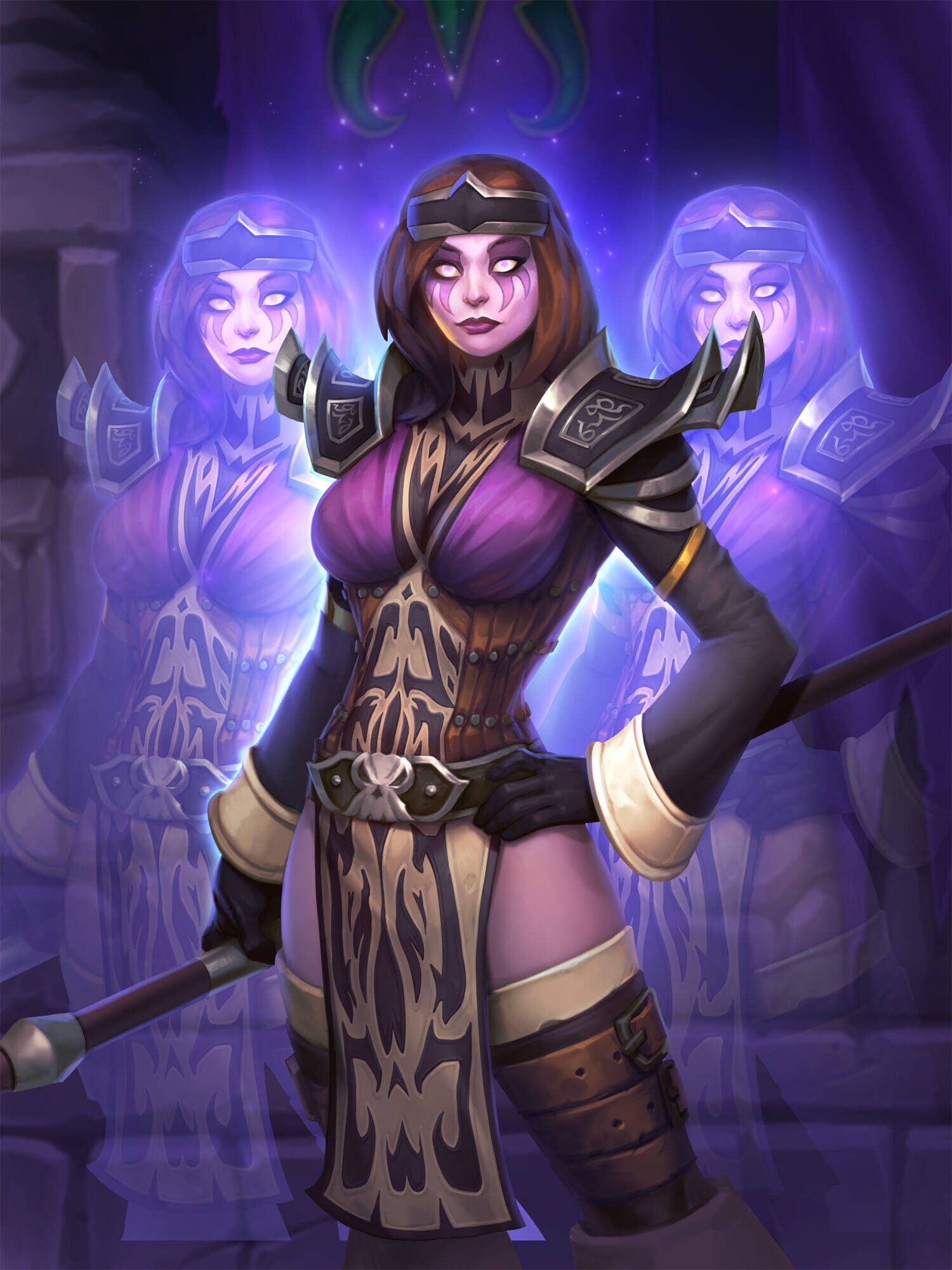 因为希望卡组可以兼具资源和节奏,所以单卡也可以大概分为节奏卡和资源卡两类。必带的强力卡中,姐夫 女巴 暗影步 恶霸都是兼具节奏和资源的假卡,不再赘述。过牌方面,通道行骗加上过牌奥秘以及两个奥秘配合随从,外加幻觉药水等卡带来的衍生资源,大多数时候都是不缺牌的。
