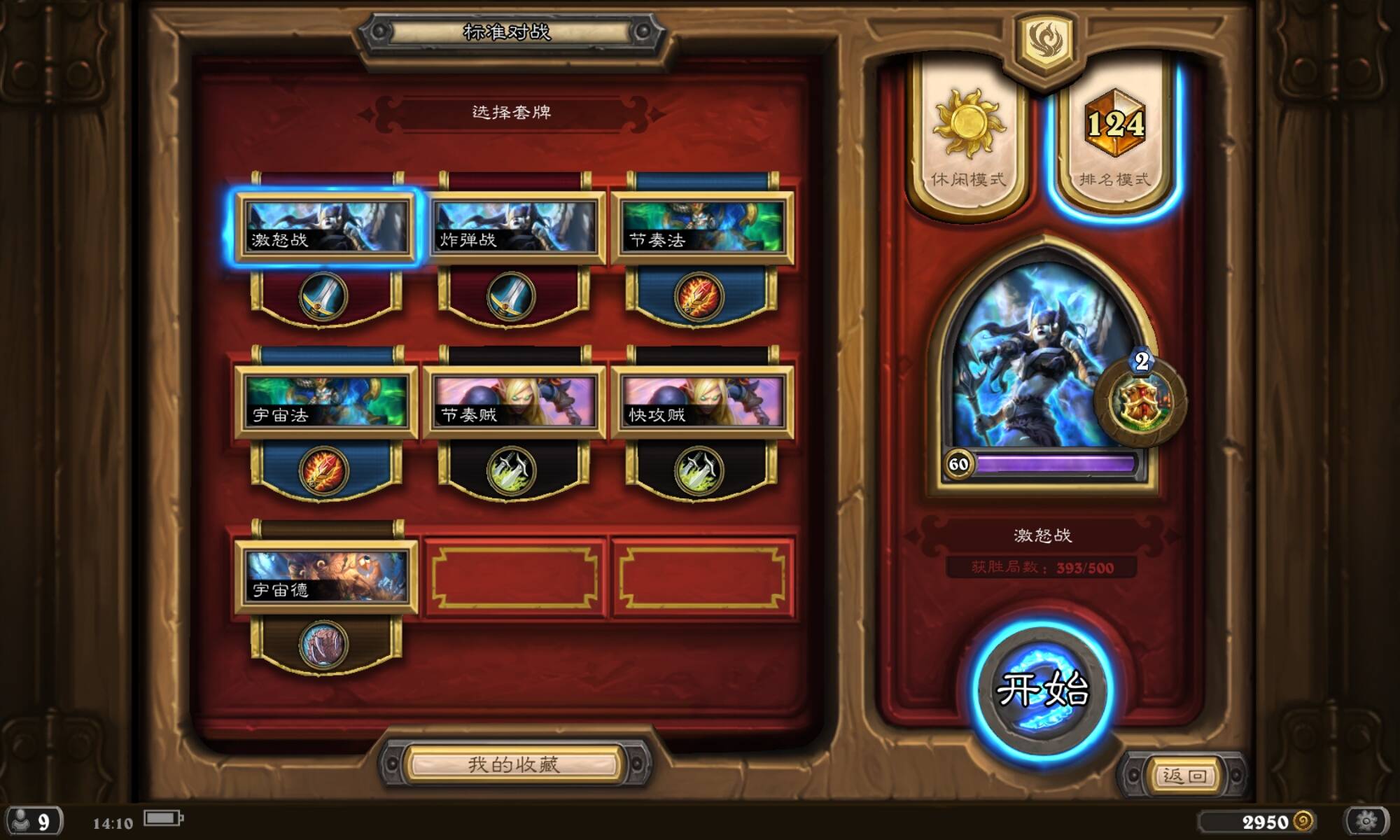 之前也玩过一段时间激怒战,但操作难度大,门槛高。对于起手留牌、何时过牌、如何斩杀等方面的问题操作不来,但在通灵学院以及暗月系列上线之后,卡组的构筑有了新的变化,荣誉护盾、吞剑艺人、氮素制剂和劈砍课程的加入降低了操作难度,同时也有了更高的斩杀。对于现在高分段盗贼和德鲁伊众多的环境有了生存的空间,甚至远比想象的好很多;另外,大神白琴里在巡回赛中用激怒战拿下冠军,又学习到了很多东西!