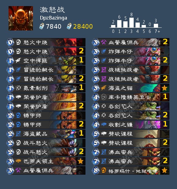 大家好,我是打牌贼战队的Bazinga(昵称来源于生化大爆炸谢尔顿的口头语),战网ID:DpzBazinga。今天给大家带来的卡组是激怒战,非常适合当下环境的一套卡组,在版本末期希望能帮助到想冲榜的小伙伴们,第一次投稿,想到哪说到哪,文章有不足的地方请大家多多指教。
