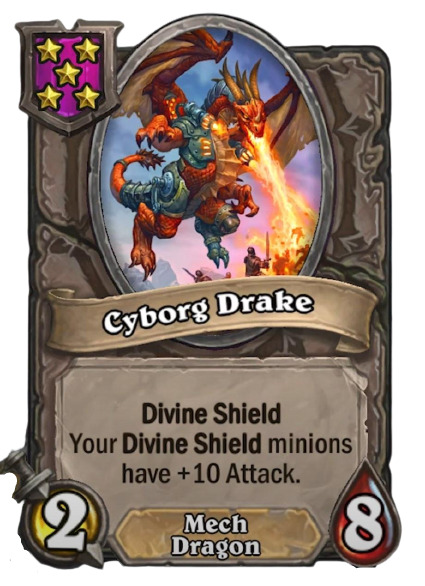 Cyborg Drake的加攻buff只作用于拥有圣盾的随从,圣盾消失buff也消失。