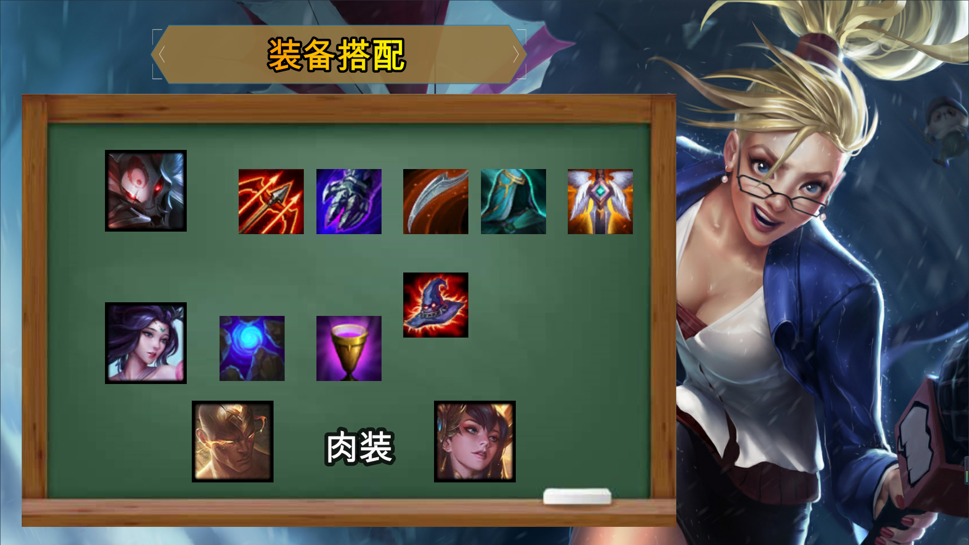 4玉剑下玉剑棋子双倍回蓝,释放技能频率快,特别建议风女玉剑天选,在4玉剑下59法力值,3次普攻释放一次技能,对局前中期风女的盾不断阵容的连胜就不会断,建议装备:天选出蓝霸符、非天选建议圣杯、基克这类阵容辅助装备,帽子也可;