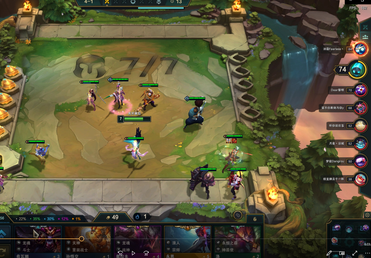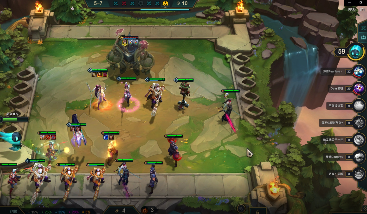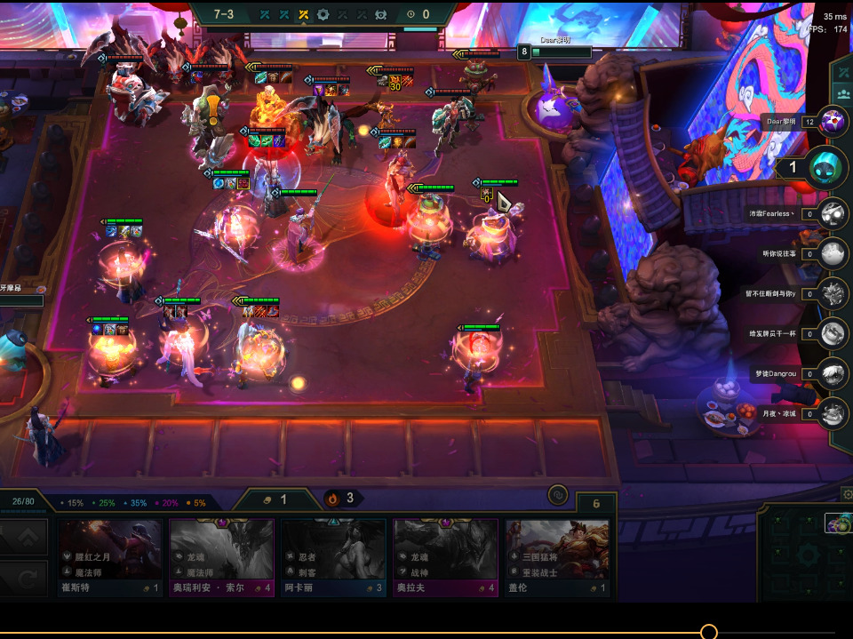 在3-5我们来了滑板鞋与武器,确定阵容,阵容小成。剩下的就是等着上7人口,来提升阵容质量了。