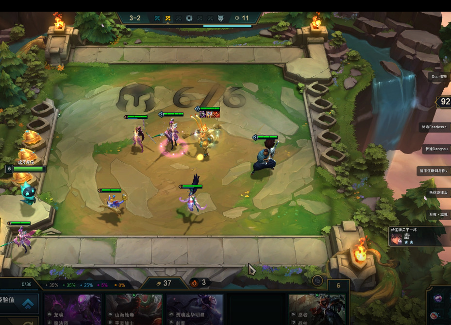 在3-2作用我们上6人口,这个视频来一张刀妹,正好凑4玉剑,用来打工,虽说不能确定阵容,但也比较像玉剑决斗了。