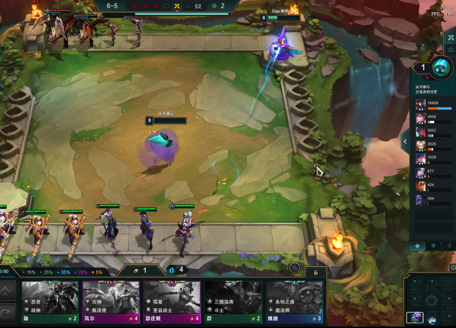 之后我们就打不过了,没办法对面一家大成双三星八斗,一个家是龙魂5法,我们小身板真的打不过,6-2才2星滑板鞋(真的天谴)连续被入了4波血,仅仅剩下一滴血。