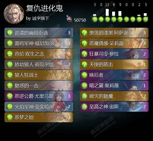 思路类型:核心概念强烈的中速思路,通过鬼妈快速点灯下,哀戚减费后的萝拉+唤厄者+狱炎恶魔combo形成暴力展开斩杀。