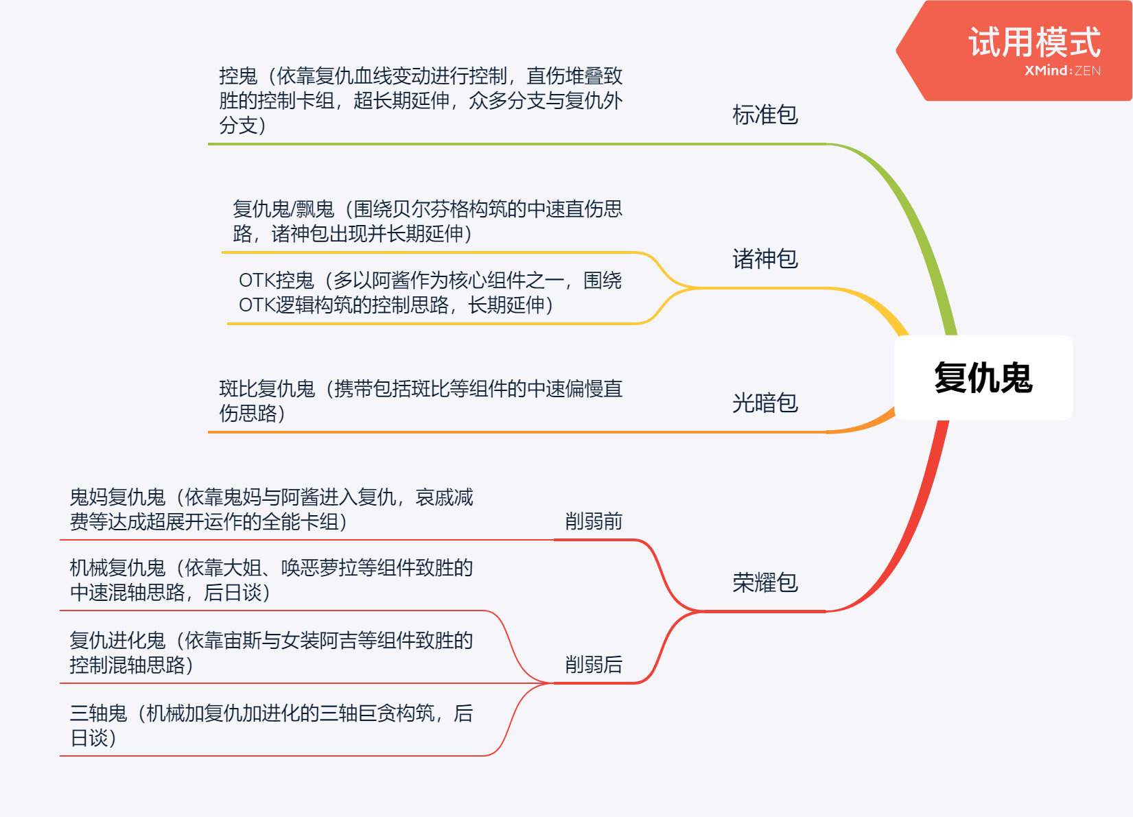 思路类型:核心概念强烈的中速思路,复仇不再仅仅是直伤与常规展开的工具,开始担任更多的成分。