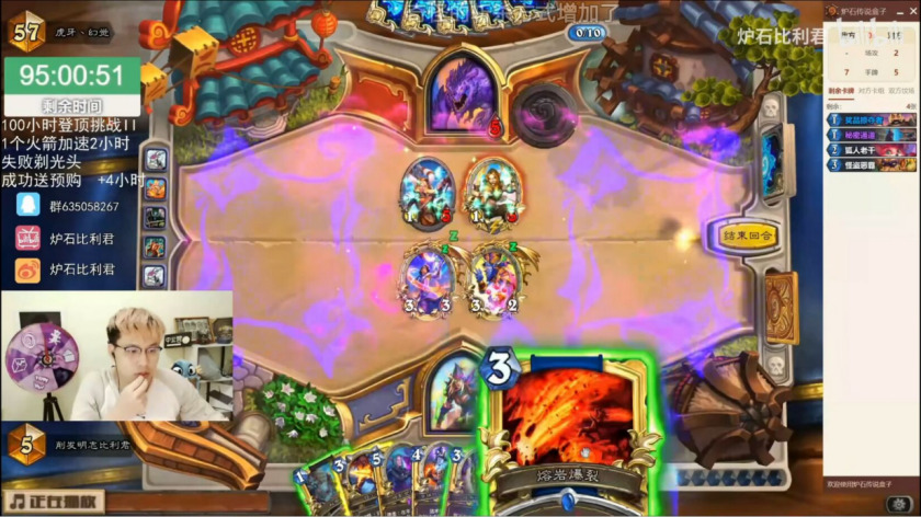 切记对局进入对局后期不要犯解场癌了,优先计算伤害和预估斩杀,同时注意自己的血线以防被斩杀,除了氮素制剂和刺骨。也要提防对手没打出过的魔杖窃贼给的法师法术牌,以及连环腿给的连击牌,很有可能是火球炎爆克苏恩面具冷血等直伤。