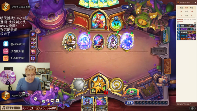 打法师核心思路是铺场抢血,二费狐人老千没连击牌手里没恶霸也直接当迅猛龙打不翻刀,拖着就是慢性死亡。