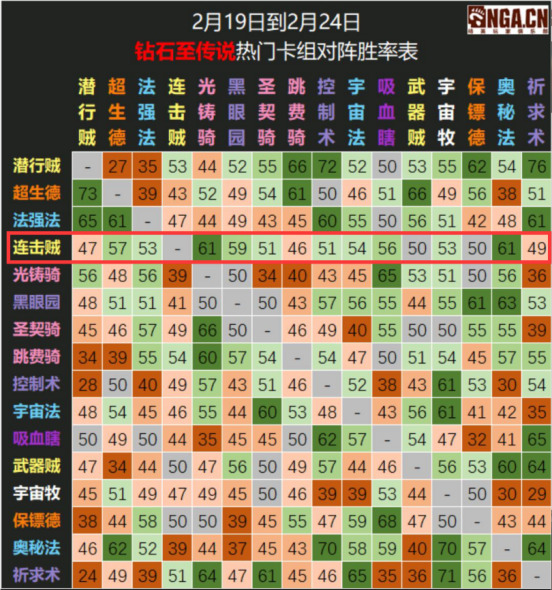 (连击贼2:偏进攻,我用的最多的一套,标配卡组。双氮素制剂+大范,爆发更高,面对法牧和内战表现更好,冲传说使用效率更高)