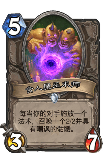 除了黑眼园外主流卡组几乎没有不带法术的职业,面对主流职业食人魔巫术师能提供巨大的场面压制力,同时2/2的嘲讽也能起到护脸的作用。而本体攻击力偏低的弊端也可由氮素制剂弥补。