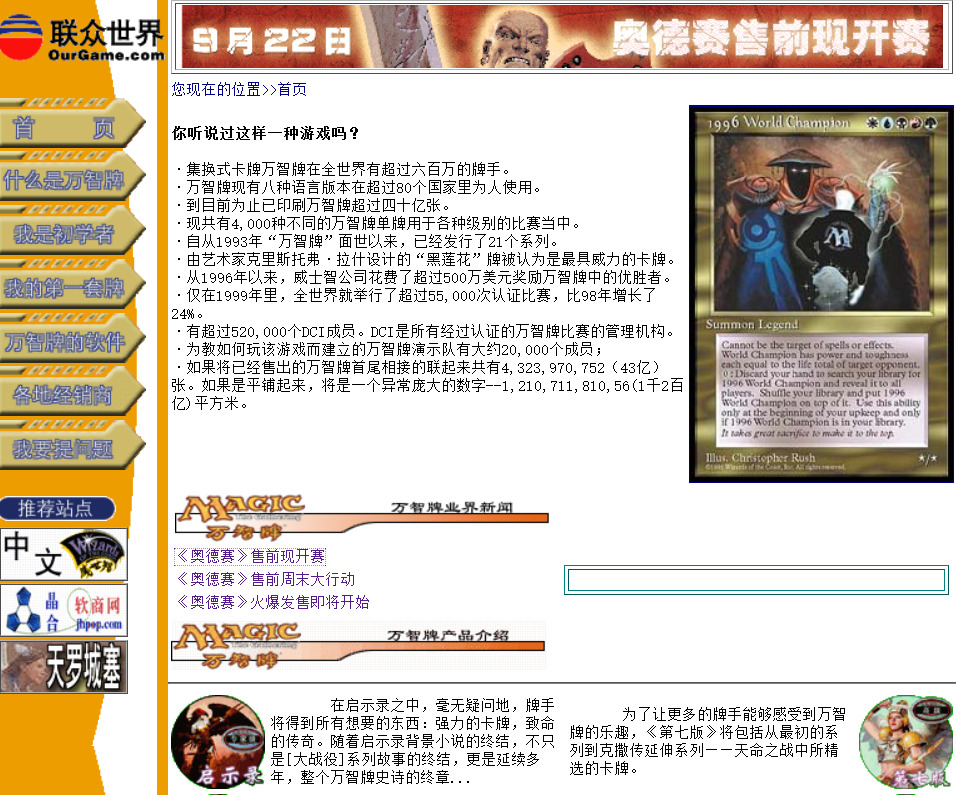 咱这里长话也短说,稍微提及下20年前的万智一些事作为文章背景(以下更多为本人的记忆,如果有其他老牌手还记得有哪些事情就有请在评论区补充内容或指正内容了。)