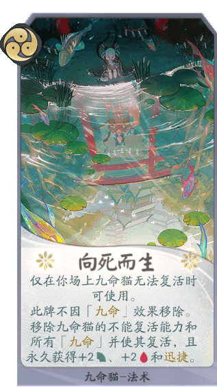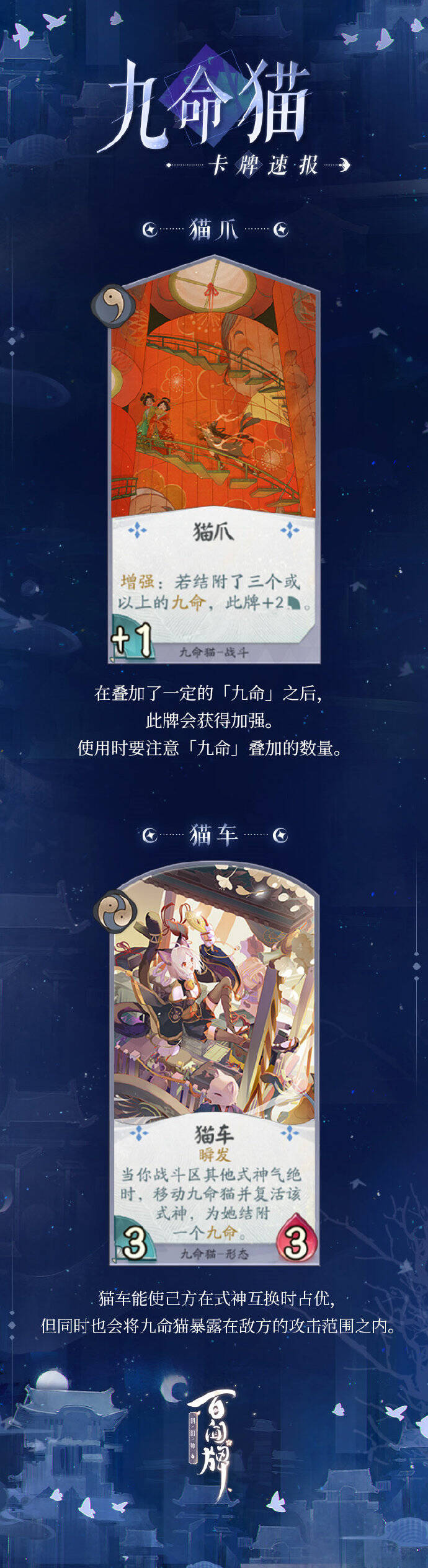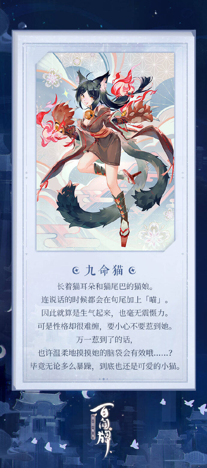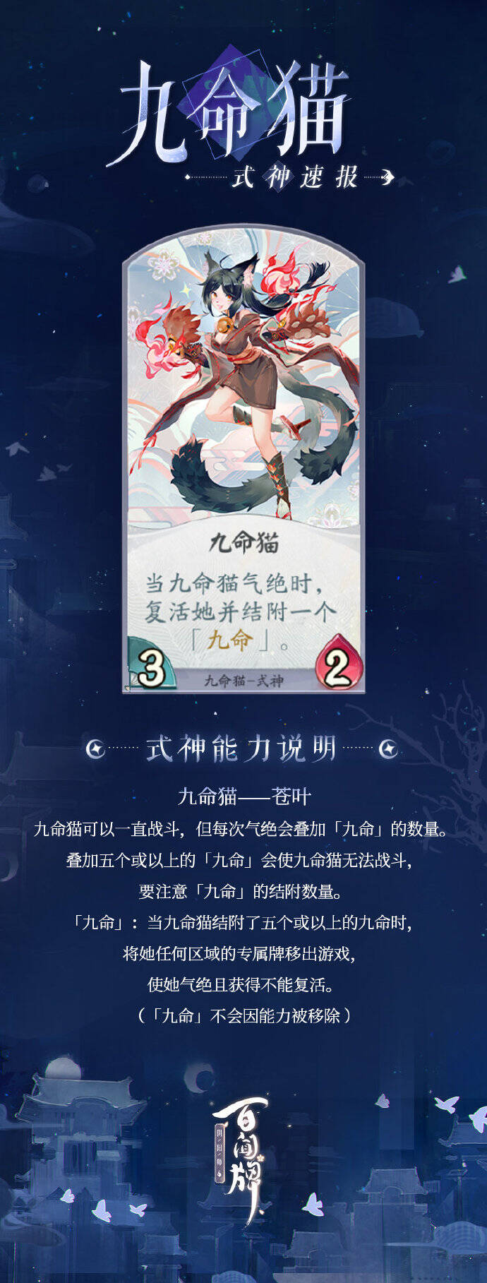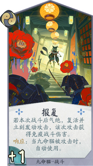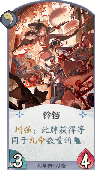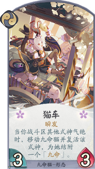 三目的远房亲戚(?)九命猫即将登船,得想个办法让她也加入猫侍应专业团队[喵喵]气绝立即复活的九命猫能够使己方在对局中进行式神交换时占据优势,快速抢占对局节奏,但同时也需要注意她“复活”次数的上限...(游戏内容以正式服版本为准)
