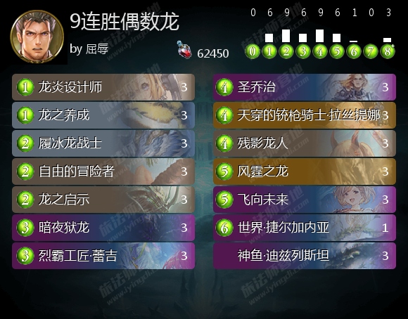 如果你没有紧迫的上分需求,也不想玩“毒瘤”的话,可以尝试一下更弱的这套牌。风霆之龙的进化效果可以起到类似于巅峰斗技场的效果,并且没有副作用。最关键的是,会让你的载具龙看起来像是一套娱乐卡组——话虽如此,原作者也使用这套卡组打出了9场连胜,还是有一定的实力的。