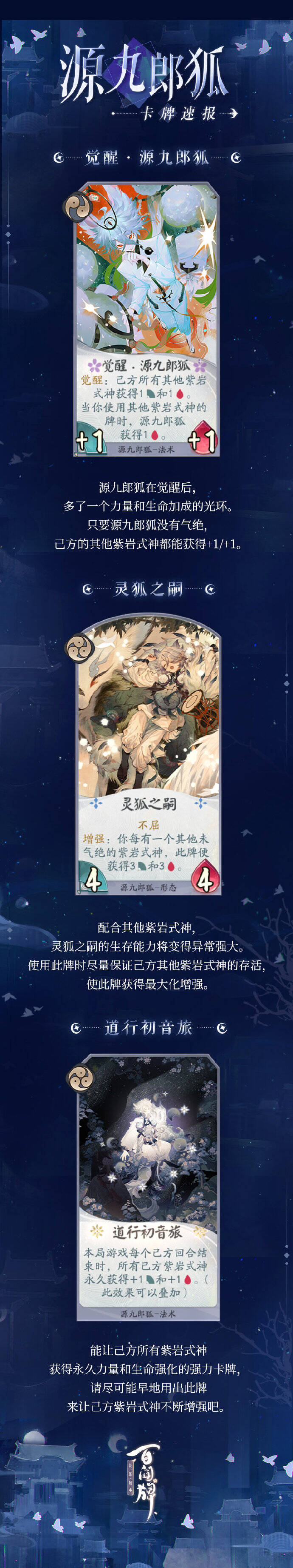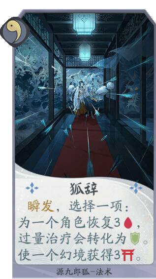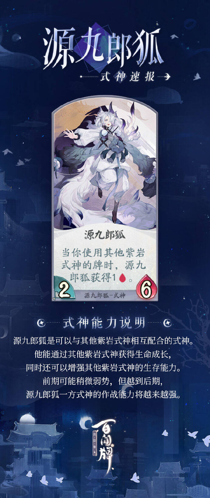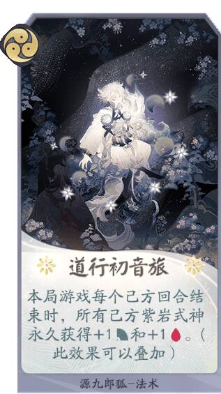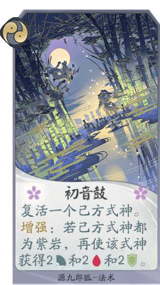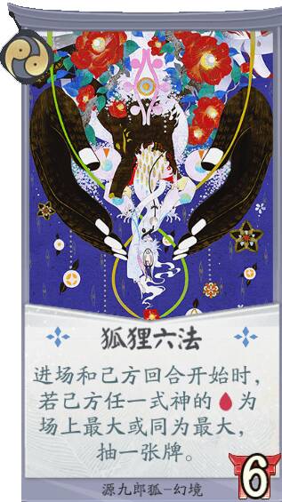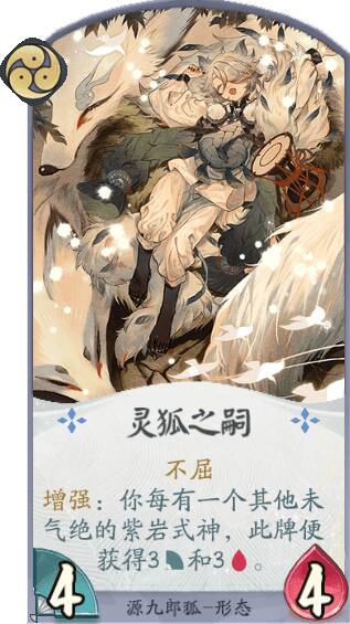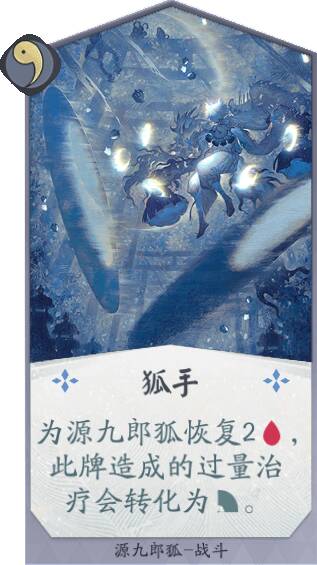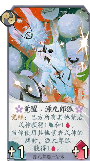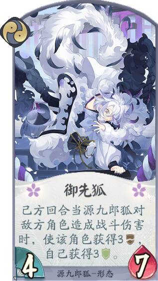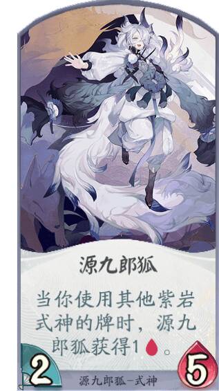 源九郎狐能在己方使用其他紫岩派系式神卡牌的情况下,不断提高生命值,成为对战中靠谱的守护力量!
