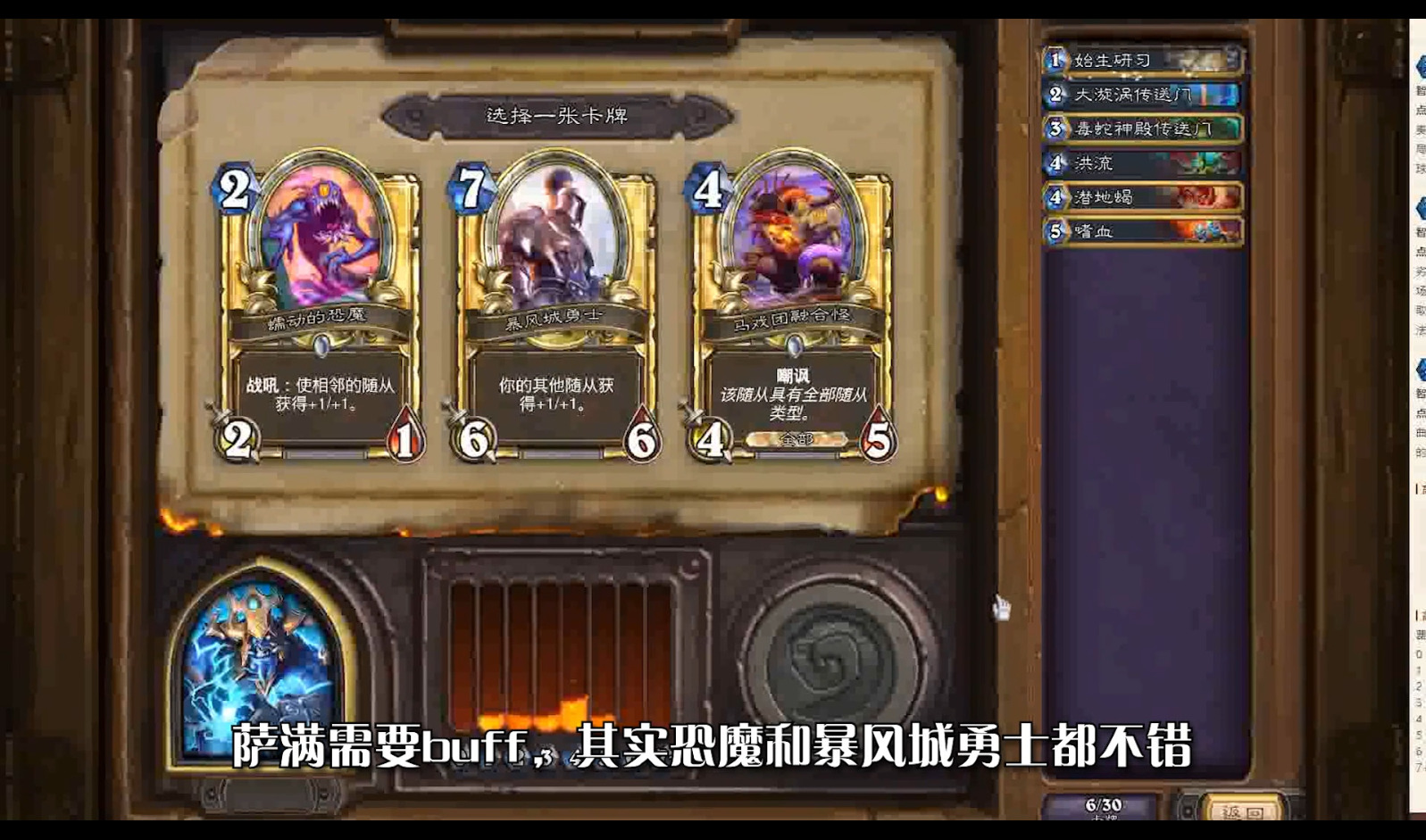 萨满需要buff,其实这抓恐魔和暴风城勇士都不错,不过马戏团融合怪对于萨满加分特别多,很容易配合上图腾映像7费2个67劝退