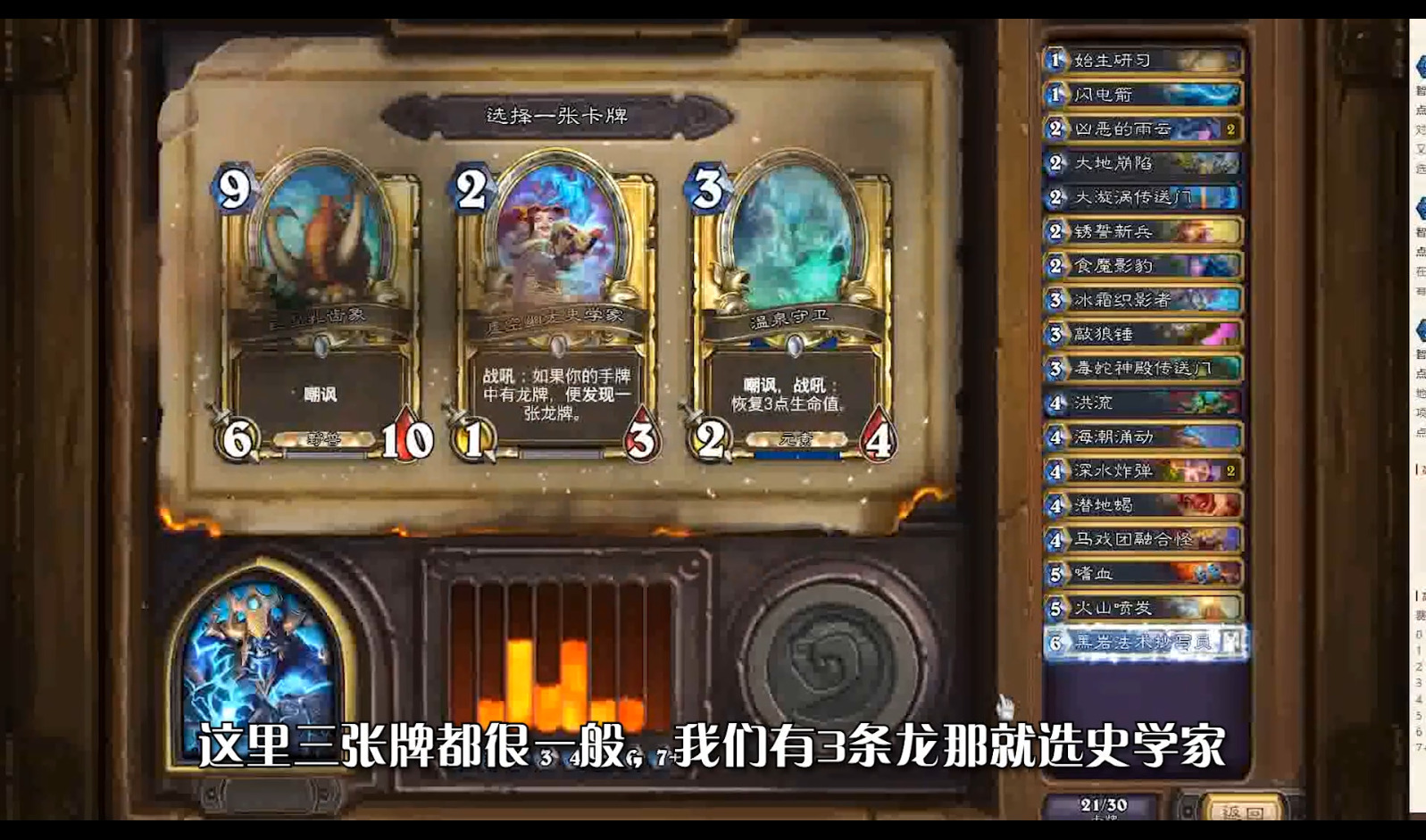 这里三张牌都很一般,我们有3条龙那就选史学家。阿里个人推荐卡组有3张以上的话,起手就可以留。梦想总是要有的,而且实战她也确实帮我们赢了很多局!(可见文末的视频)