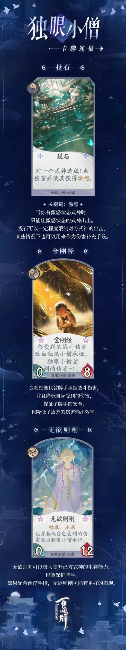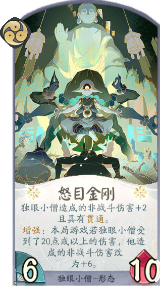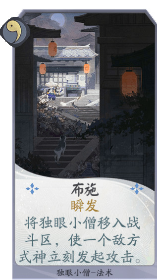 追寻着朦胧记忆中那只停落在窗外的蝴蝶,独眼小僧背着师傅踏上了旅程。这一次,他能在蜃气楼找到一直期盼着的蝴蝶吗?受到攻击的独眼小僧能够使用多种手段进行反击,或者限制敌方式神的行动,有效保证牌手安全的同时给予敌方惩罚。